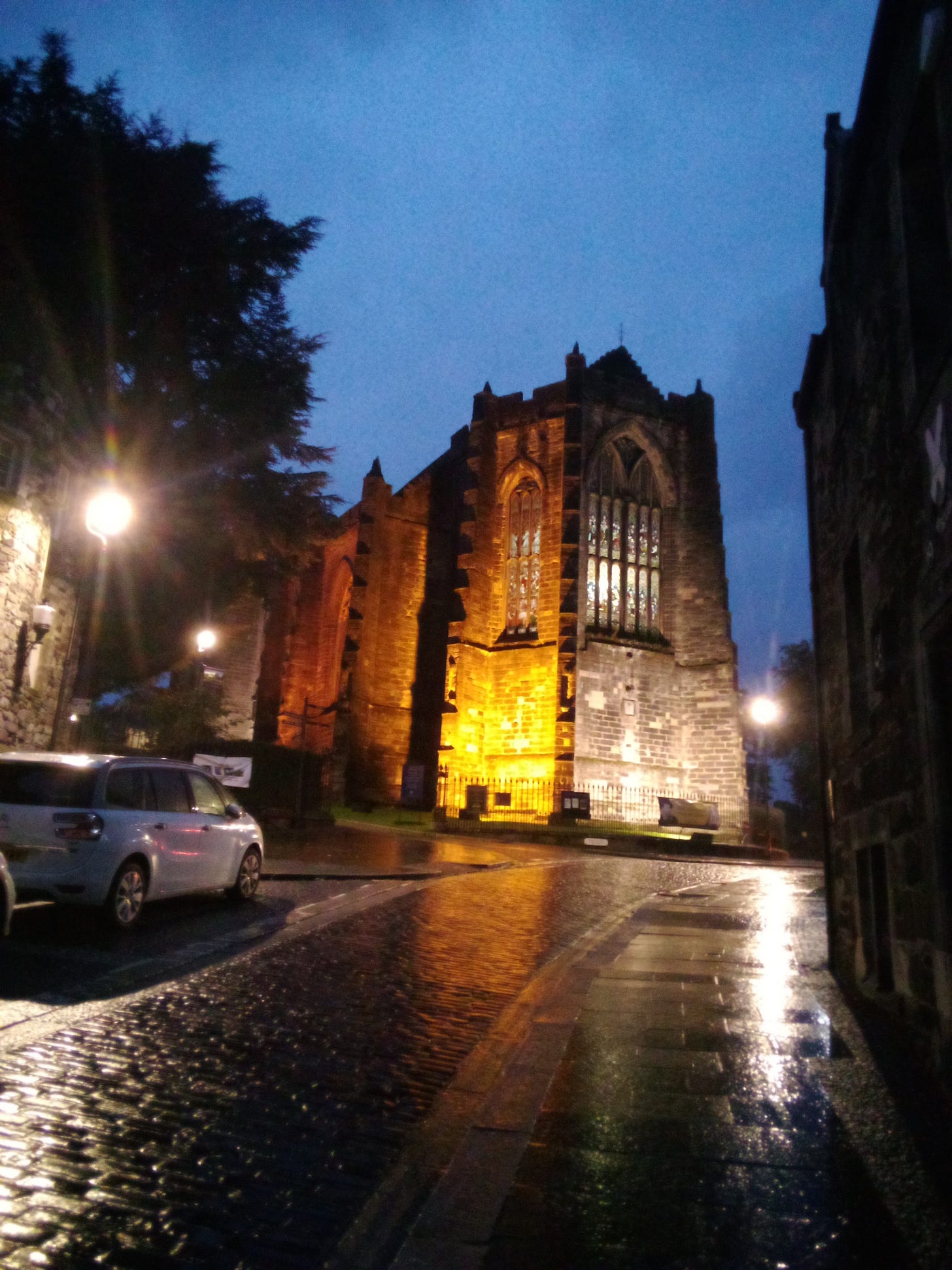 I set out into the drizzling dark of that Gothic town. My ride home secured, our rendezvous fixed— but with no time pressure to find it— I drank deeply of the nocturnal delights of Stirling.